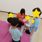 「手は遠くにつく」、「両足はウサギみたいにドン!」だよと伝えたら、自分でイメージして何度もチャレンジしていました。