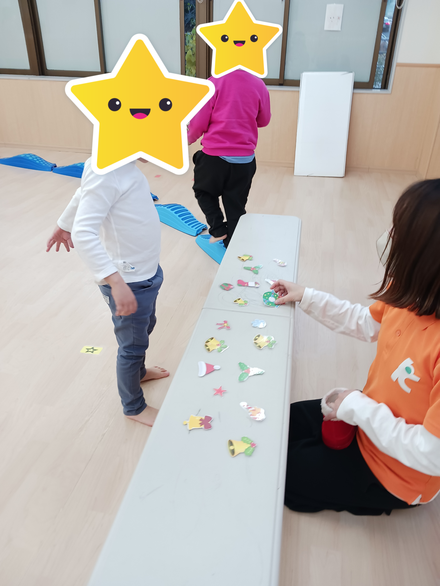 今回のサーキットでは、クリスマスツリーの飾り付けを子どもたちが手伝う内容となっています。