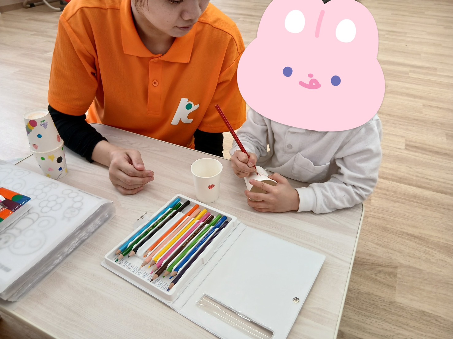 紙コップに色鉛筆で絵を描いたりシールで飾り付けをしたりすることで楽しく取り組む姿がありました!
