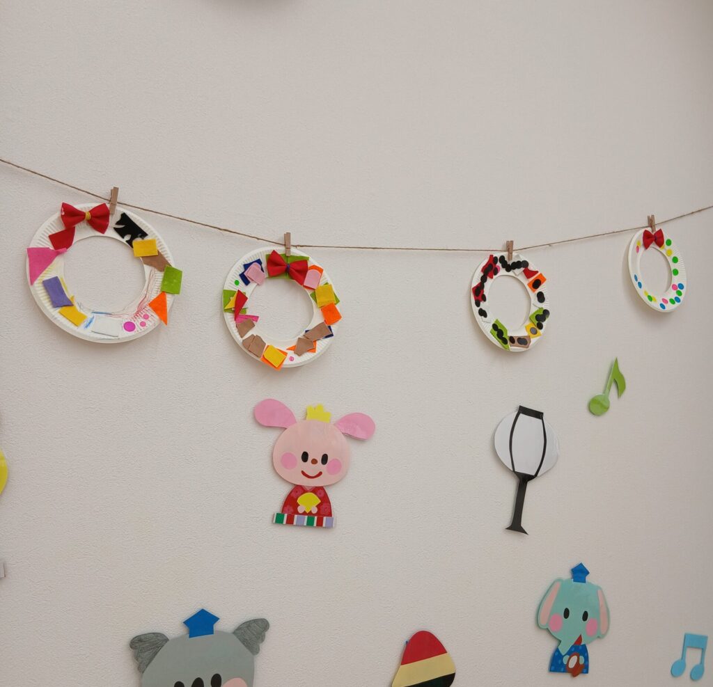 祝日など長い時間を利用し、前回はフェルトを使ってリース作りを行いました👍