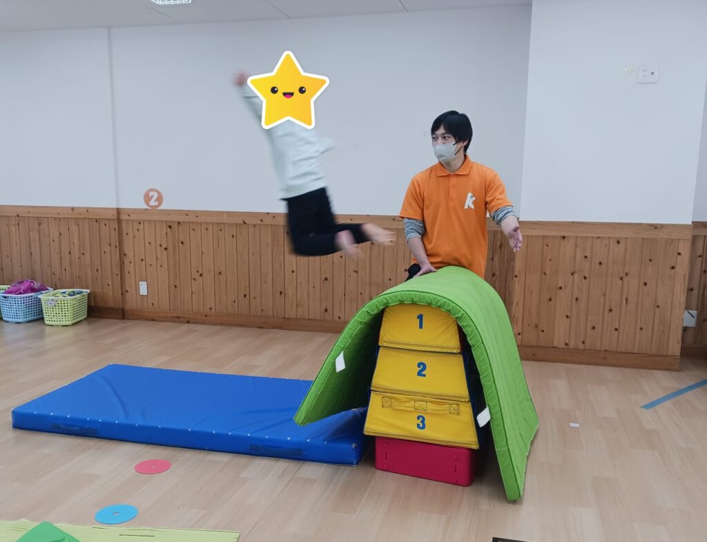高い跳び箱に飛び乗って大きくジャンプする運動から始め、月の後半には開脚飛びに挑戦しました。高い所からジャンプする運動は落ちる感覚を楽しみながら何度も楽しく取り組んでくれる子が沢山いました♪開脚飛びも事前の説明を聞いたり、スタッフのアドバイスを聞きながらみんな上手に動作を行うことができていました✨