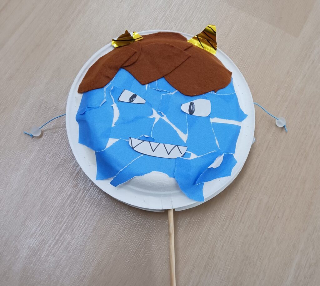 画用紙をちぎったり、貼る動作を上手に行うことができていました。また各々好きな様に目や口、角を貼ることで個性的な鬼ができあがっていました😆最後には太鼓を振り、音が出る様子を楽しむ子ども達がとても可愛らしかったです♪