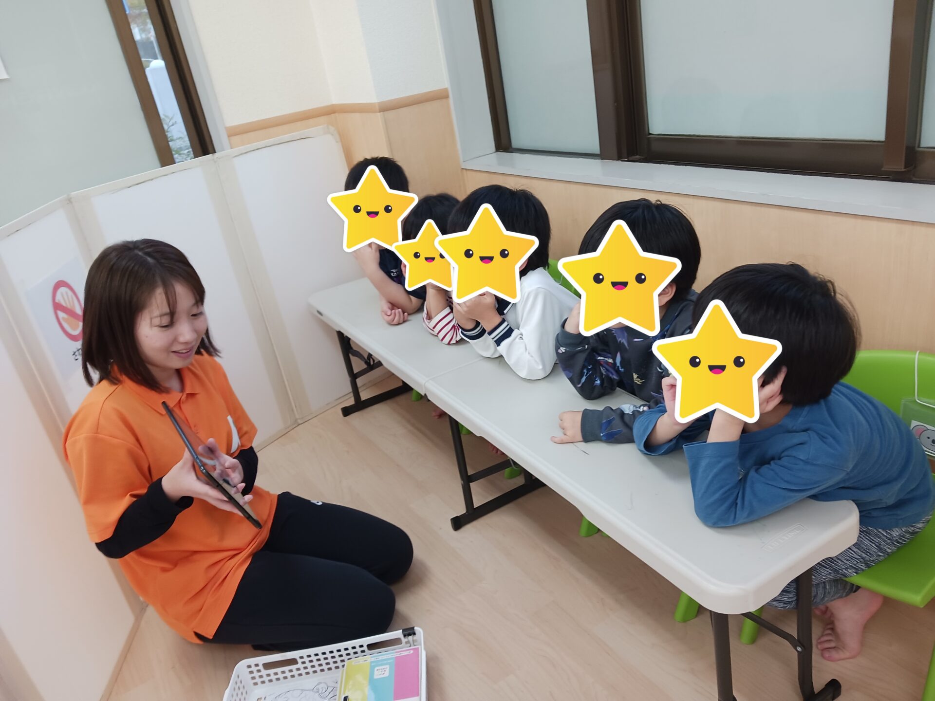 お話の最後には「合言葉はなんだった?」ときくと「いかのおすしー!!」と元気よく伝えてくれる姿がありました😄