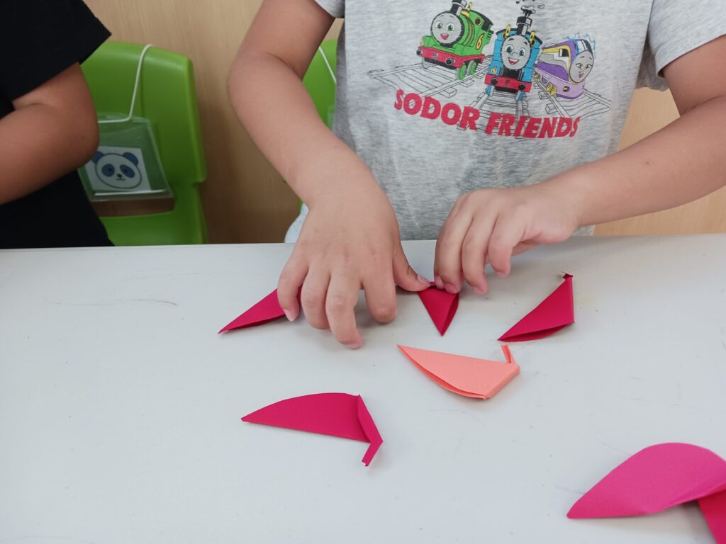 葉っぱ作りは1枚1まい子どもたちと折り目をつけてリアル感を出しています✨