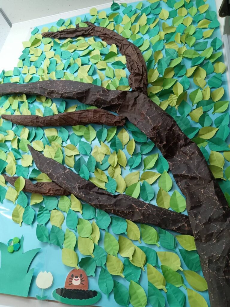 新年度には緑の葉っぱを子ども達と一緒に製作して貼り付けてもらいました。