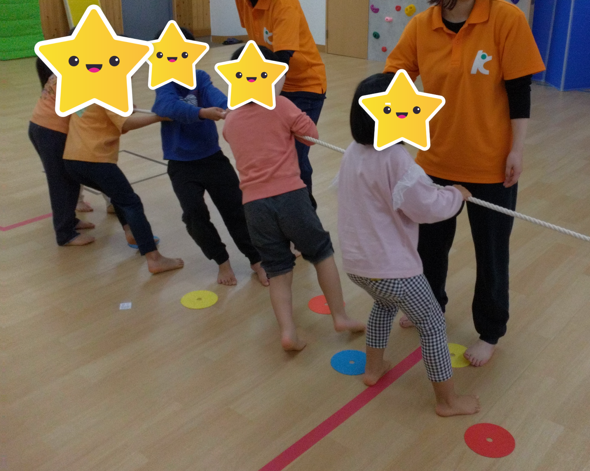 友だちと手を繋いだり、「隣の輪っか空いてるよ!」と声をかけてくれたりする子もいてとても楽しそうな姿が見られました♪