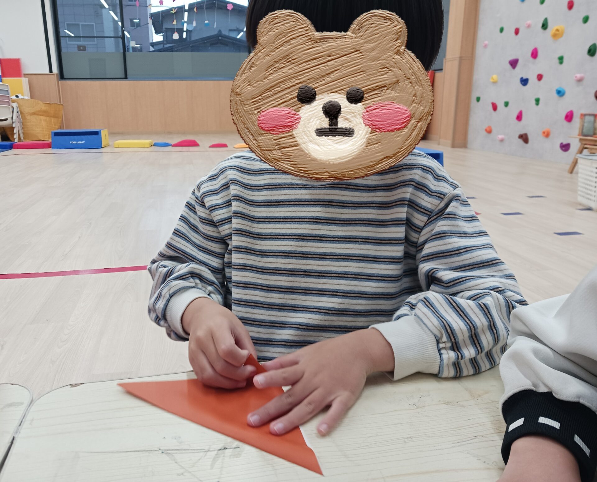 スタッフの説明を聞きながら三角に折ったり半分に折ったりなど真剣な表情で取り組む姿が見られました!その中で「ここどうやって折るの?」とスタッフに質問する子や「上手にできた!見て!」と教えてくれる子など色々な様子が見られました!
