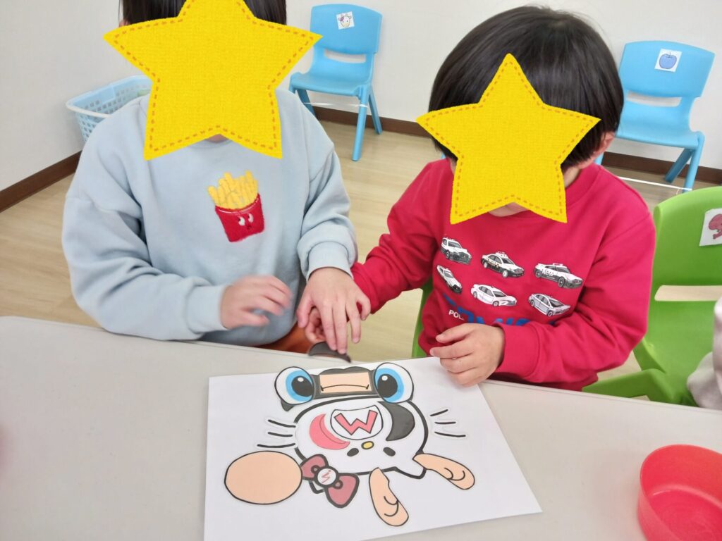 福笑いは目をつぶりながら並べてみたり、友だちと一緒に面白い顔を作ってみたりと思い思いに福笑いを楽しむ様子が見られました!!