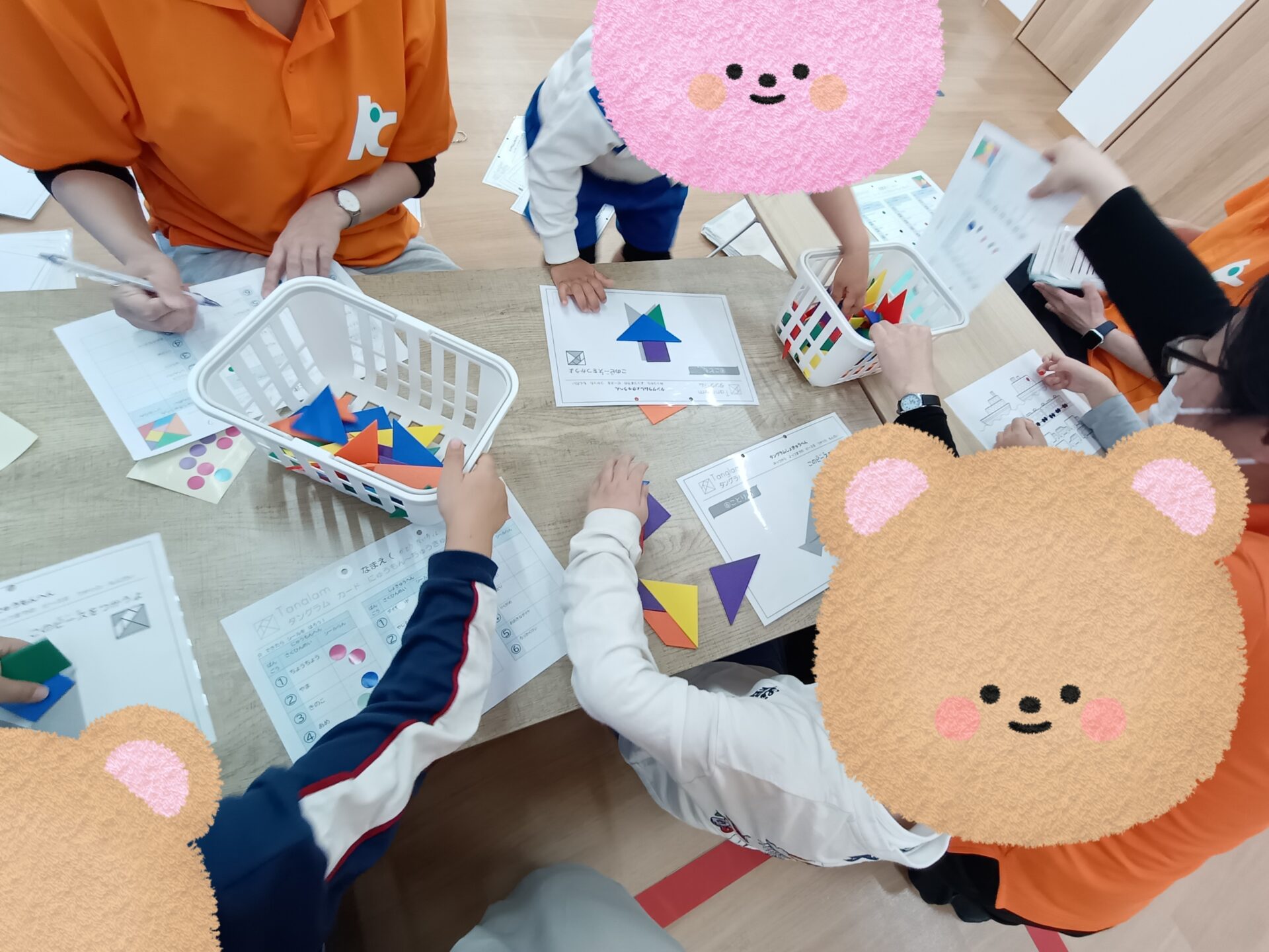 また、今回のタングラムから苦手意識のある児童も楽しく取り組みことができるように、お題に線を引いた分かりやすいお手本を用意したり、児童が見通しを持ち、向上心を持って取り組むことができるようにとタングラムカードを用いて取り組んだりと、どの児童も前向きに活動に取り組むことができるように改善しています!📣