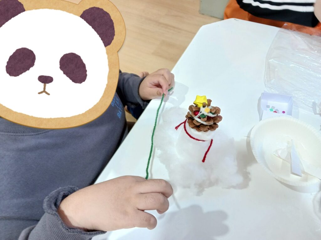 ユースでも、微細運動では松ぼっくりとコップを使ったクリスマスツリーの製作を行いました🎄✨