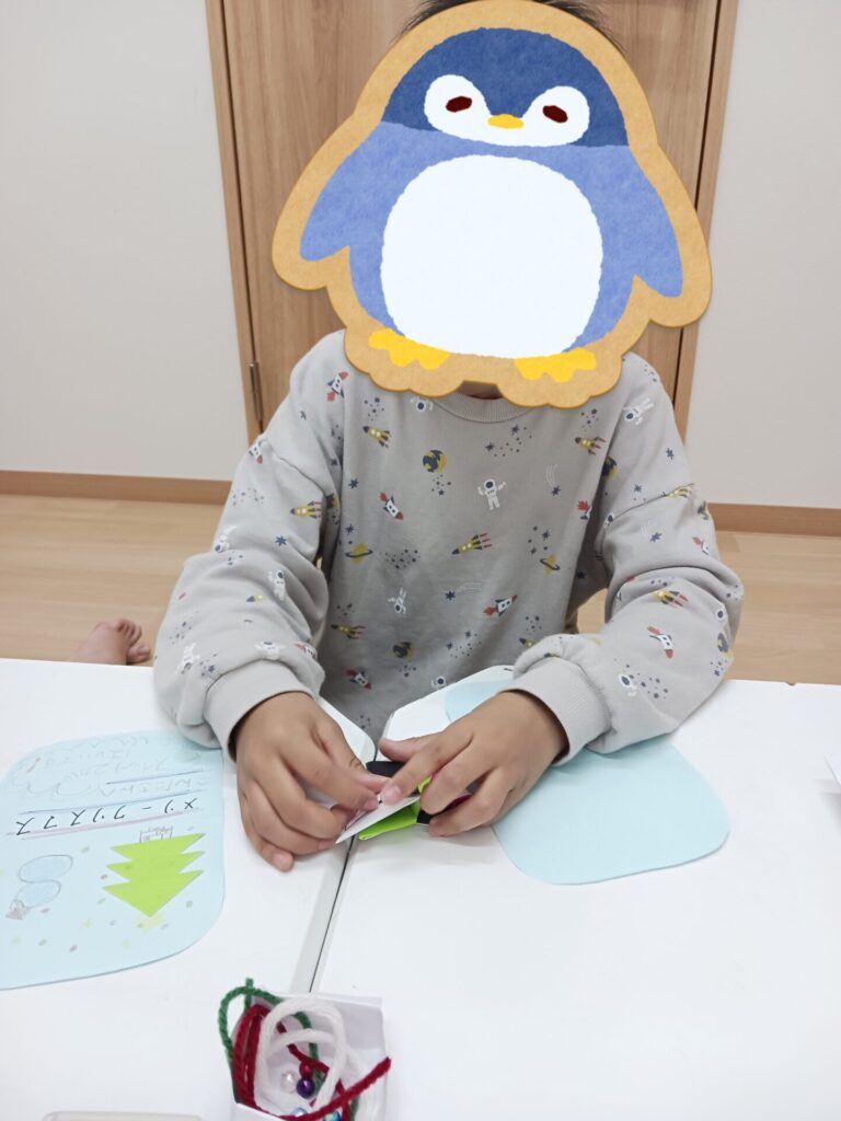 その後、早く終わった子はクリスマスカード作りを行いました。